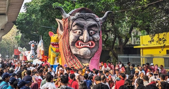 সোমবার (১৪ এপ্রিল) পয়লা বৈশাখ উপলক্ষ্যে ঢাকা বিশ্ববিদ্যালয়ের চারুকলা অনুষদ প্রাঙ্গণ থেকে শুরু হওয়া বর্ণাঢ্য বর্ষবরণ আনন্দ শোভাযাত্রার র্যালি শেষ হয়েছে।